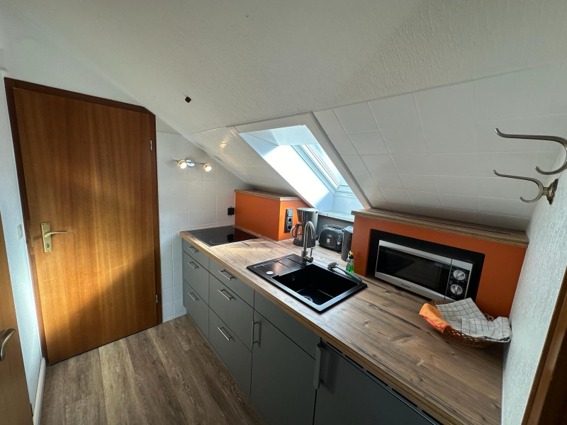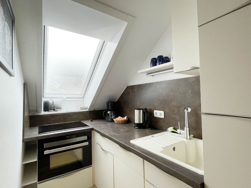 Für 2 Personen, 2. Etage, 1 Wohnraum, 1 Schlafraum mit Doppelbett, Flachbild-TV in Wohn-/ u. Schlafraum, separate Küche, Geschirrspüler, Essplatz, Dusche/WC, Nichtraucher